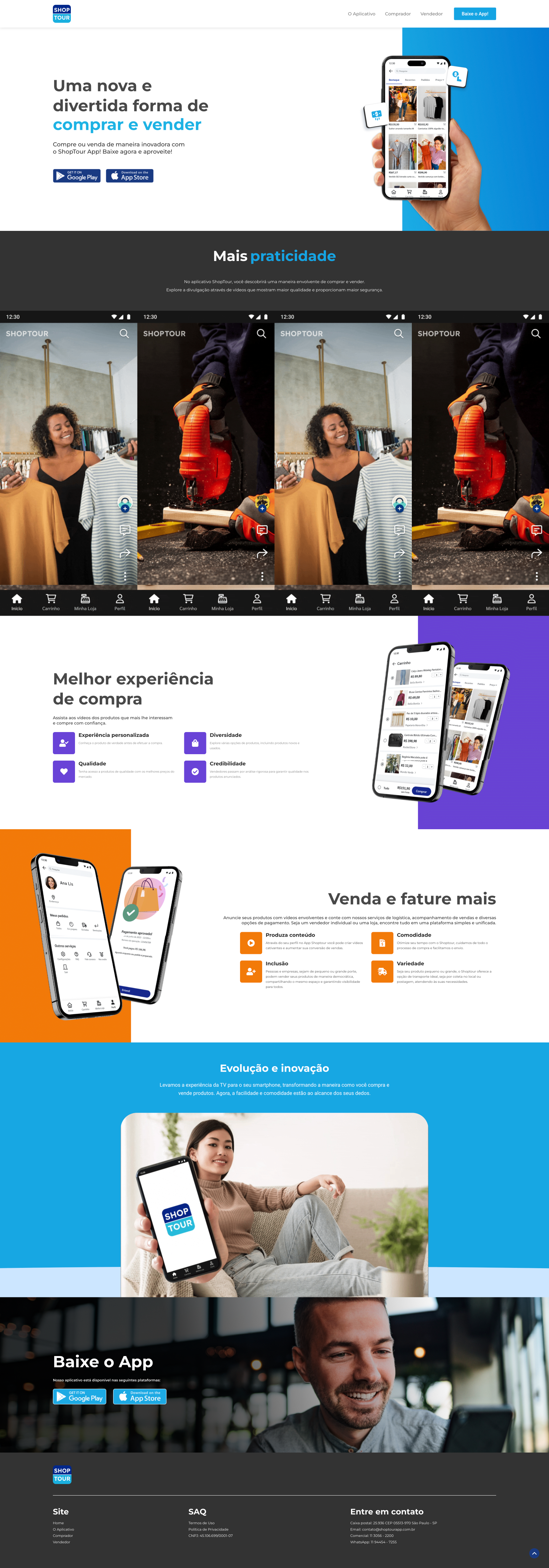 Desenvolvemos uma landing page para o Shoptour, um aplicativo de compra e venda inovador que utiliza vídeos curtos para anunciar produtos. A página tem como objetivo apresentar as principais funcionalidades do app, destacando sua proposta diferenciada e atraindo novos usuários e vendedores.
